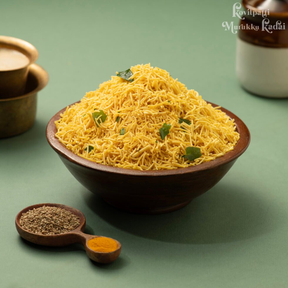 Savor the crisp and aromatic taste of Omapodi, a traditional South Indian snack made with gram flour and infused with the unique flavor of ajwain (omam). Light, crunchy, and mildly spiced, it’s perfect for tea-time, festive platters, or as a base for mixtures and chaats.